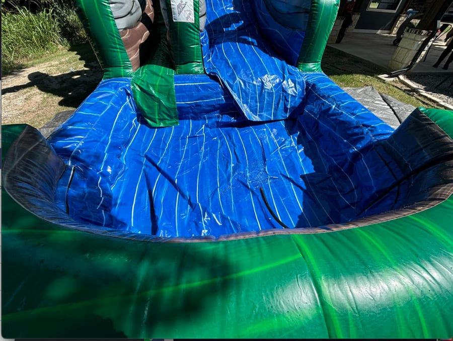 This huge water slide showcases eye-catching colors in various shades of green, complemented by big palm trees that create a tropical oasis in your own backyard. The vibrant design will captivate both kids and adults, making it the perfect addition to your summer fun activities. 🌞🌴