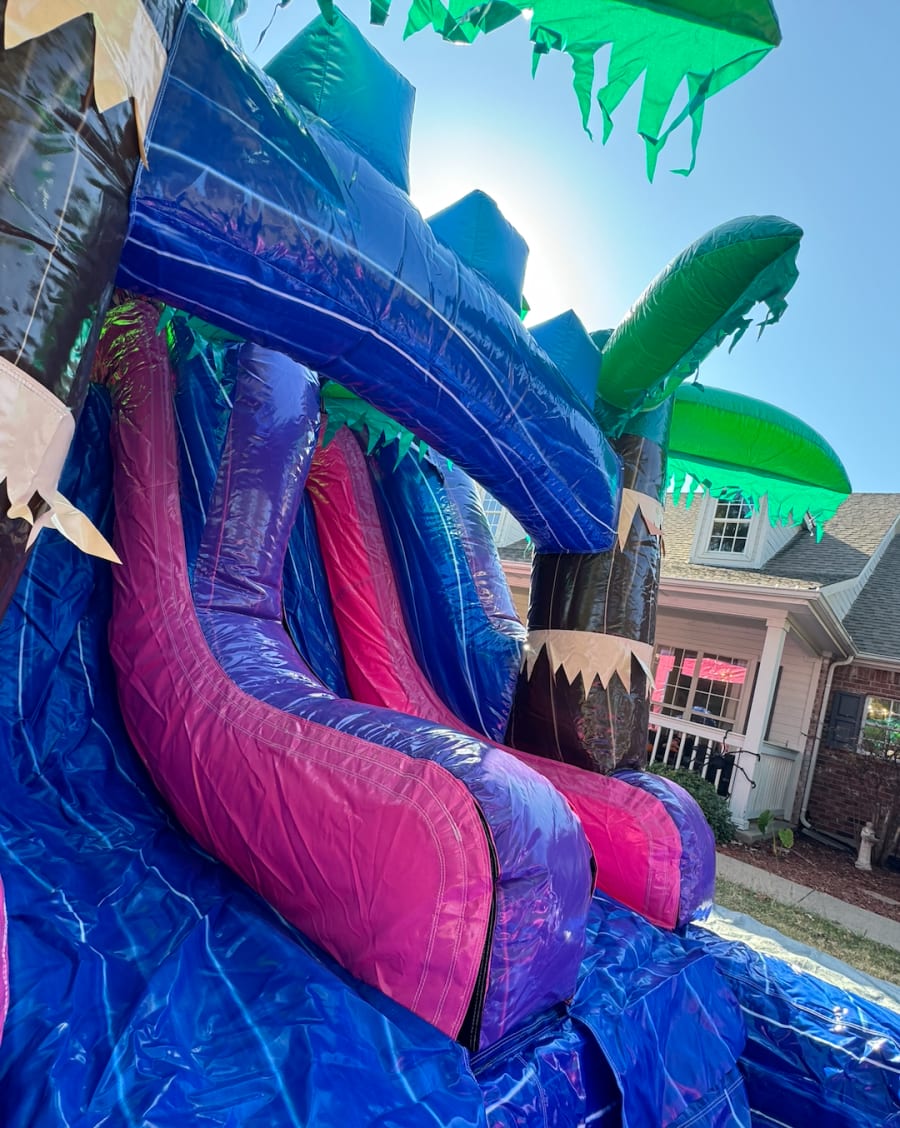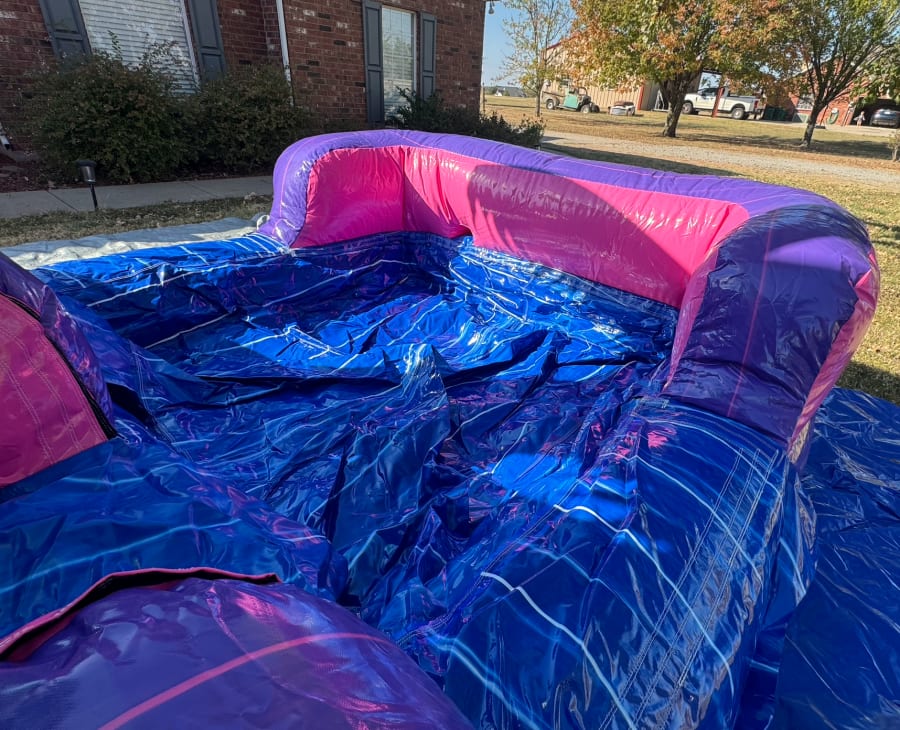 Transform your event into a vibrant, fun-filled celebration with our Cotton Candy Dual Lane Combo. This eye-catching inflatable boasts a delightful color palette of pink, purple, and blue, reminiscent of sweet cotton candy vibes. 🥳 Perfectly designed for both wet and dry use, it features a dual lane for double the fun! 🌟