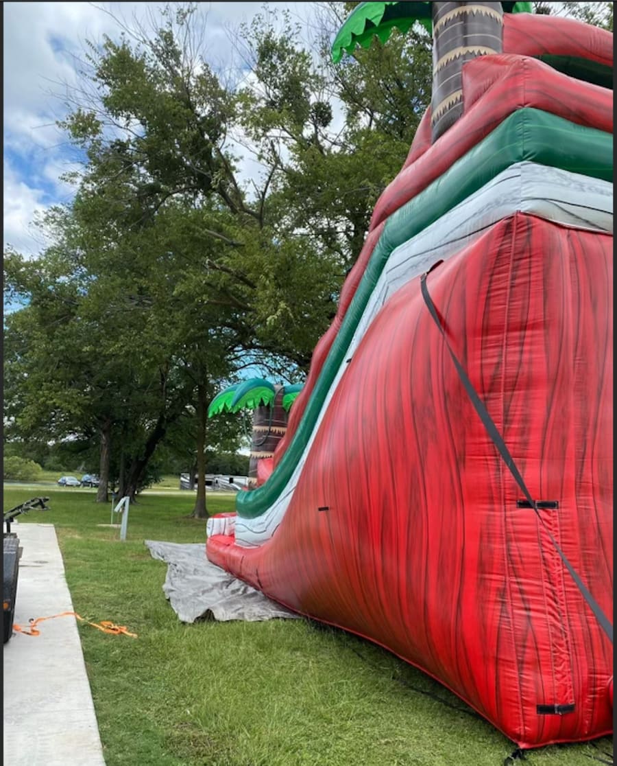 Get ready for an exhilarating adventure with our newest water slide addition - Fireball! 🎢 This massive water slide is designed for those who seek excitement and thrills. With its vibrant mix of red shades, sprinkled with hints of white and green, Fireball stands out as a showstopper at any event. 🌟